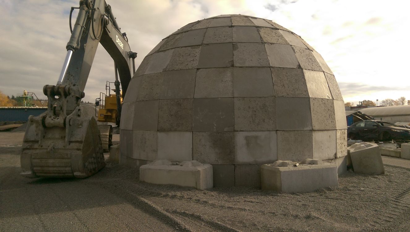 The dome system is designed with sturdiness as the number one priority.  With 750mm thick solid concrete walls, it achieves just that.  Since it uses the Lock-Block™ proprietary key design, the structure is extremely resilient to external loads.